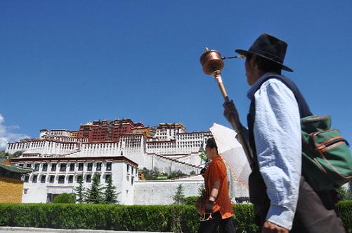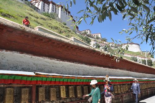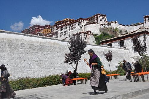 信教群眾在布達拉宮北面的轉(zhuǎn)經(jīng)道上轉(zhuǎn)經(jīng)