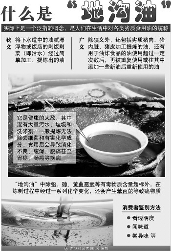 研究表明,長期攝入地溝油會對人體造成明顯傷害,如發(fā)育障礙、易患腸炎,并有肝、心和腎腫大以及脂肪肝等病變。而地溝油中的主要危害物之一黃曲霉素是一種強(qiáng)烈的致癌物質(zhì),其毒性是砒霜的100倍。另一個問題是倫理上的,別人吃過的油,在下水道里變質(zhì),再撈上來,你能吃得下去嗎? 那么,有沒有一種簡便的方法,可以鑒別地溝油呢?我們不妨聽聽食品科學(xué)專家和業(yè)內(nèi)人士怎么說。 1、科學(xué)鑒別地溝油 目前沒有好辦法 在一個注重食品安全的時代,理想的狀態(tài)是,你下館子,隨手掏出一張試紙浸到菜里,過一會兒拿出來跟譜表比比,然后大叫:“掌柜的,換油!” 2、傳統(tǒng)的檢測方法 都有一定局限性 在科研工作者看來,治理地溝油的難點(diǎn)在于,經(jīng)過洗滌、蒸餾、脫色、脫臭等精煉過程后,單從外觀和感官上,很難區(qū)分地溝油和普通油。不法商販還會把地溝油摻入食用油中,如果含量較少,更是難以檢測。 3、鑒別地溝油 冰箱顯身手? 曾在北京多家大酒樓擔(dān)任總廚、高管的特級廚師馮鵬說,一般情況下,地溝油和普通油無法區(qū)分,進(jìn)貨時難免上當(dāng)。他只能通過實(shí)踐來判斷:飯館炒菜之前一般要先過油,在這道“滑油”工序中,好油可反復(fù)使用七八次,而地溝油最多使用三次就會變黏,而且有哈喇味兒。 “另外,室外溫度較低時,地溝油會像棕櫚油一樣凝固,所以常有人用地溝油冒充棕櫚油。”馮鵬說,冬天可以據(jù)此鑒別地溝油,夏天則可通過冰箱來檢驗。一些媒體認(rèn)為地溝油有味道,可以聞出來,此外里面含水多,下鍋會爆響,馮鵬認(rèn)為這些都是無稽之談,因為水根本摻不進(jìn)油中,且地溝油也沒什么異味。 4、我們該如何 鑒別地溝油? 一看。看透明度,純凈的植物油呈透明狀,在生產(chǎn)過程中由于混入了堿脂、蠟質(zhì)、雜質(zhì)等物,透明度會下降;看色澤,純凈的油為無色,在生產(chǎn)過程中由于油料中的色素溶于油中,油才會帶色;看沉淀物,其主要成分是雜質(zhì)。 二聞。每種油都有各自獨(dú)特的氣味。可以在手掌上滴一兩滴油,雙手合攏摩擦,發(fā)熱時仔細(xì)聞其氣味。有異味的油,說明質(zhì)量有問題,有臭味的很可能就是地溝油;若有礦物油的氣味更不能買。 三嘗。用筷子取一滴油,仔細(xì)品嘗其味道。口感帶酸味的油是不合格產(chǎn)品,有焦苦味的油已發(fā)生酸敗,有異味的油可能是地溝油。 四聽。取油層底部的油一兩滴,涂在易燃的紙片上,點(diǎn)燃并聽其響聲。燃燒正常無響聲的是合格產(chǎn)品;燃燒不正常且發(fā)出“吱吱”聲音的,水分超標(biāo),是不合格產(chǎn)品;燃燒時發(fā)出“噼啪”爆炸聲,表明油的含水量嚴(yán)重超標(biāo),而且有可能是摻假產(chǎn)品,絕對不能購買。 五問。問商家的進(jìn)貨渠道,必要時索要進(jìn)貨發(fā)票或查看當(dāng)?shù)厥称沸l(wèi)生監(jiān)督部門抽樣檢測報告。 |